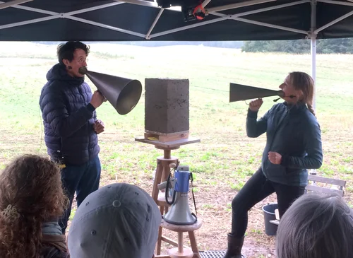 If you take a tour of all the sculptures, you will partly experience a journey through today’s cultivated landscape, but you will also move from the Ice Age, to the period after the Ice Age, to historical and current mining and quarrying, industrialisation, the former coastline, and the dense urban space. With a symbol from the Ice Age moved into present time, you might acquire a different perspective of the landscape.